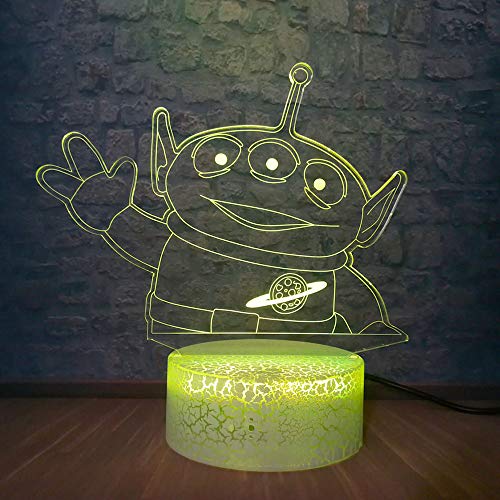 Cute Toy Story Green Aliens 3D LED Lamp USB Charge Teen Bedroom Sleep Night Light Desk Lamp Home Dec