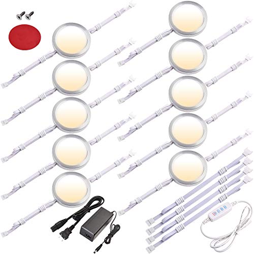 Buy Lvyinyin Under Cabinet LED Puck Lights, 3 Colors Changeable, Dimmable Linkable 10 Lights Kit, for Ki