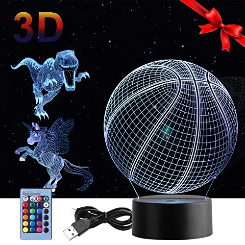 Buy 3D Night Light,AOYOO 3D Dinosaur Illusion Night Lamp Elstey 8 Colors Optical Decorative LED with R