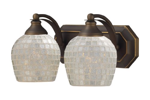 Elk 570-2B-SLV 2-Light Vanity in Aged Bronze and Silver Mosaic Glass