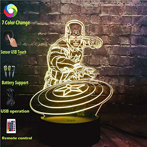 Jinlycoo 3D Optical Cool Marvel Captain America lamp for Boy Room The Avengers 7 Color USB Change Mo
